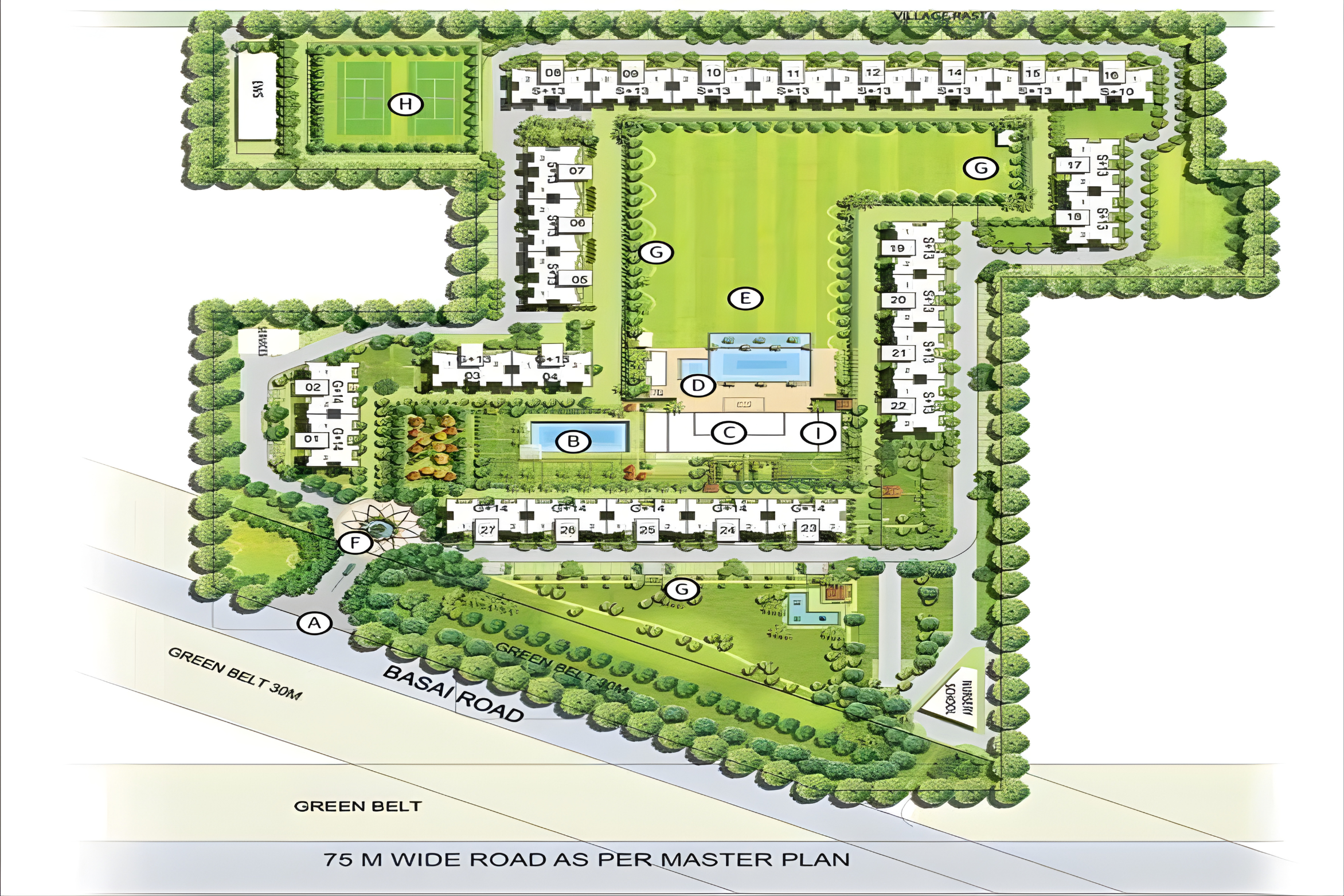 the Dwarka Expressway. The residential project spreads across 13.5 acres and includes 27 towers