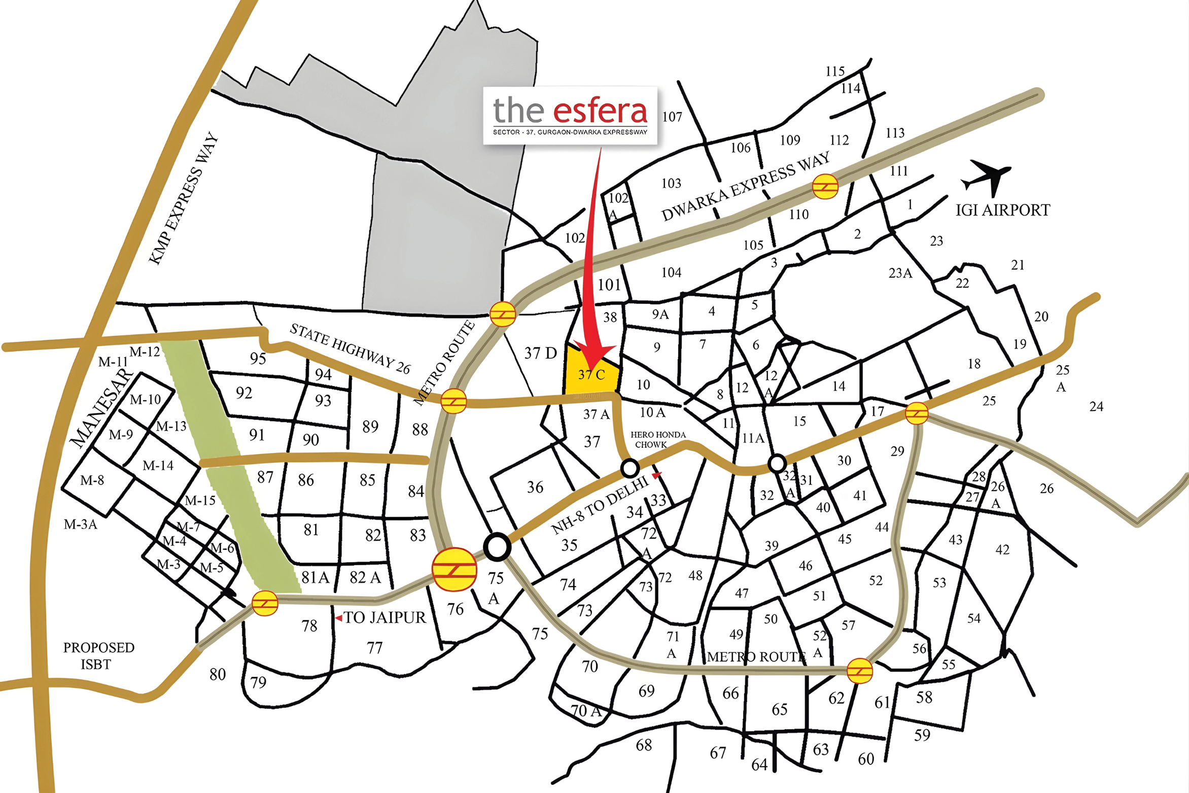 ● It takes 20 minutes to reach IGI Airport, and NH-8 is accessible.