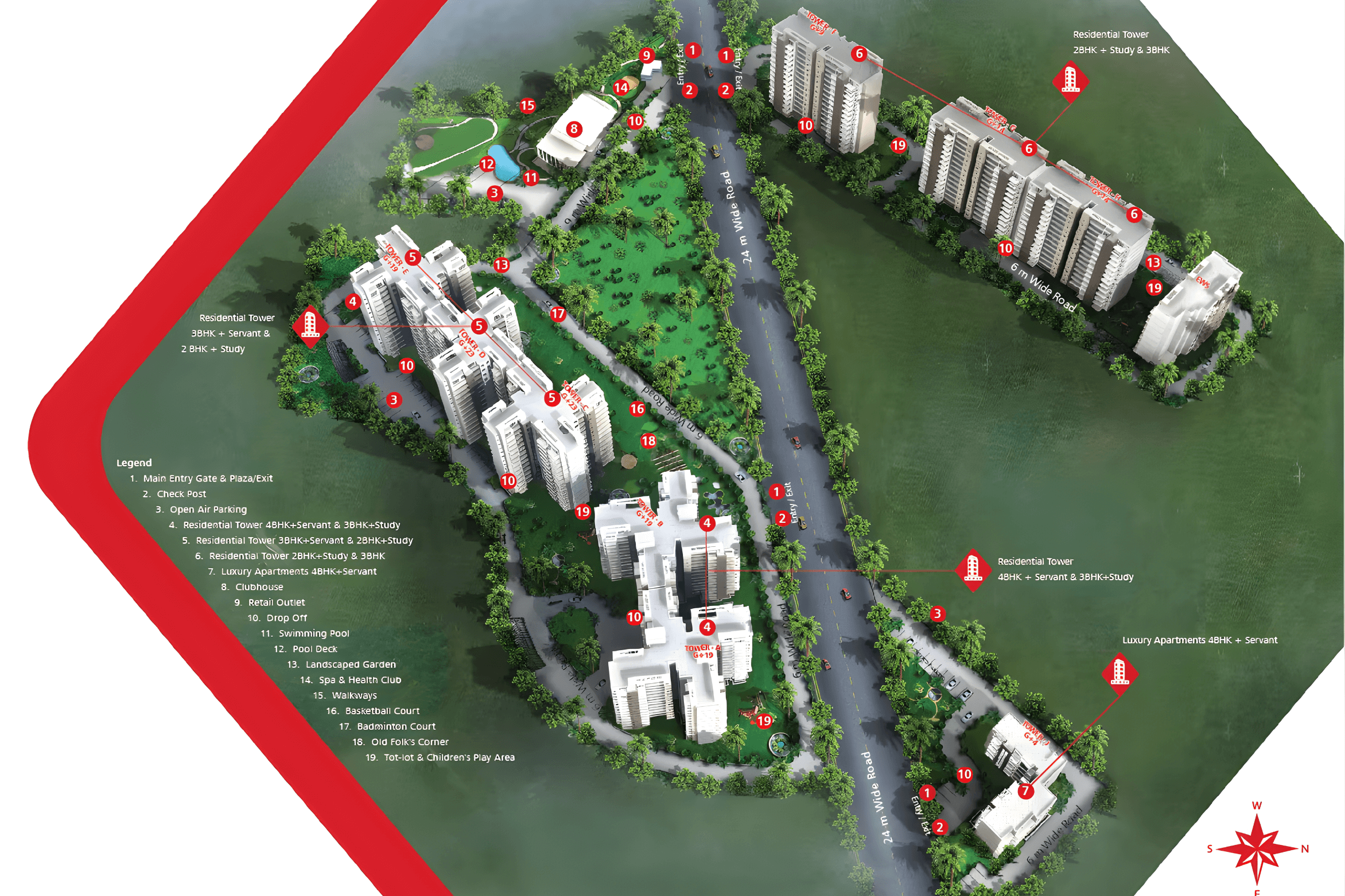 spread across 10 towers creating a contemporary way of life with green surroundings and many