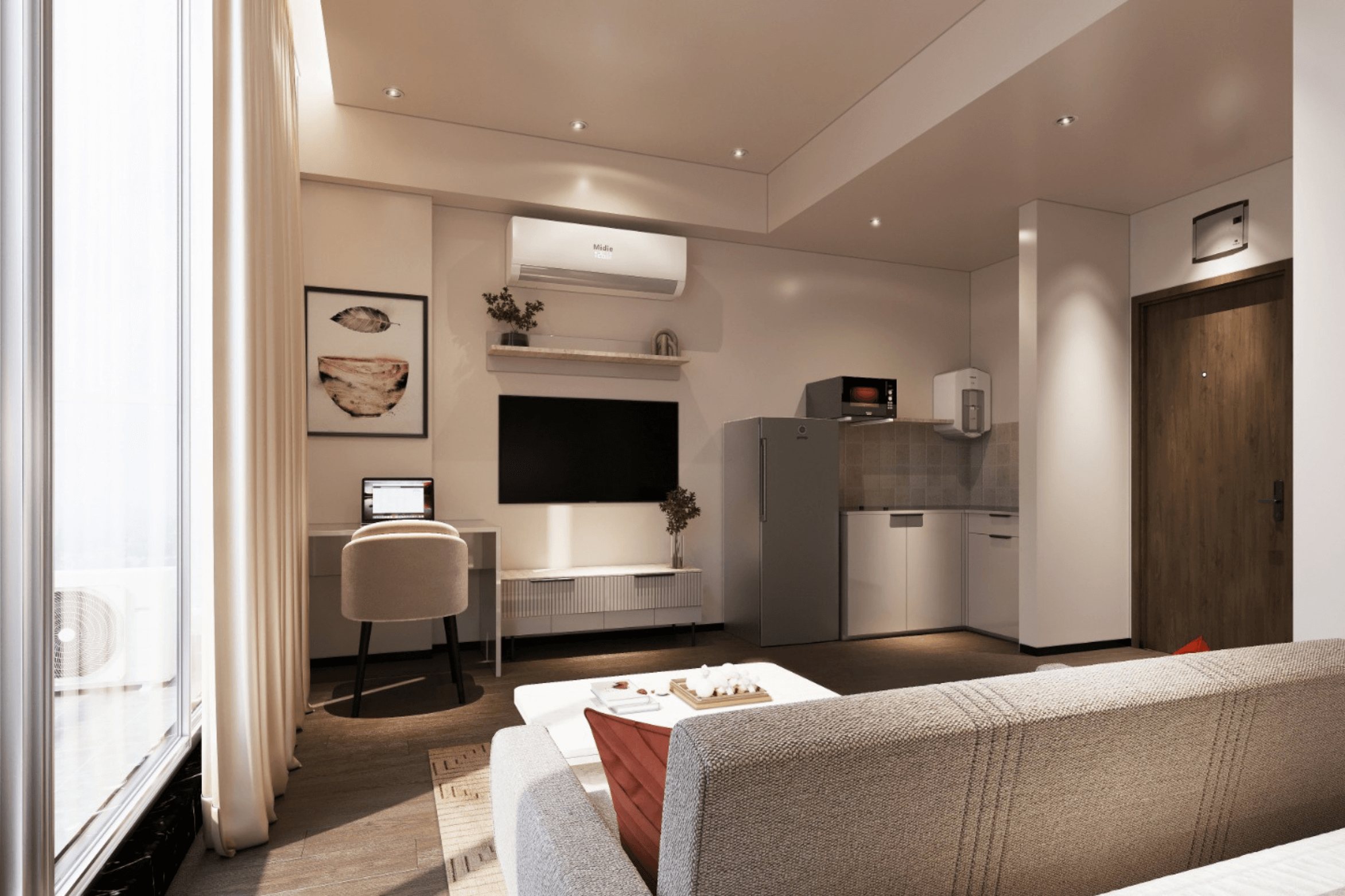 - Furnished Studio Apartments: Comes set up with a kitchenette, balcony, and combined