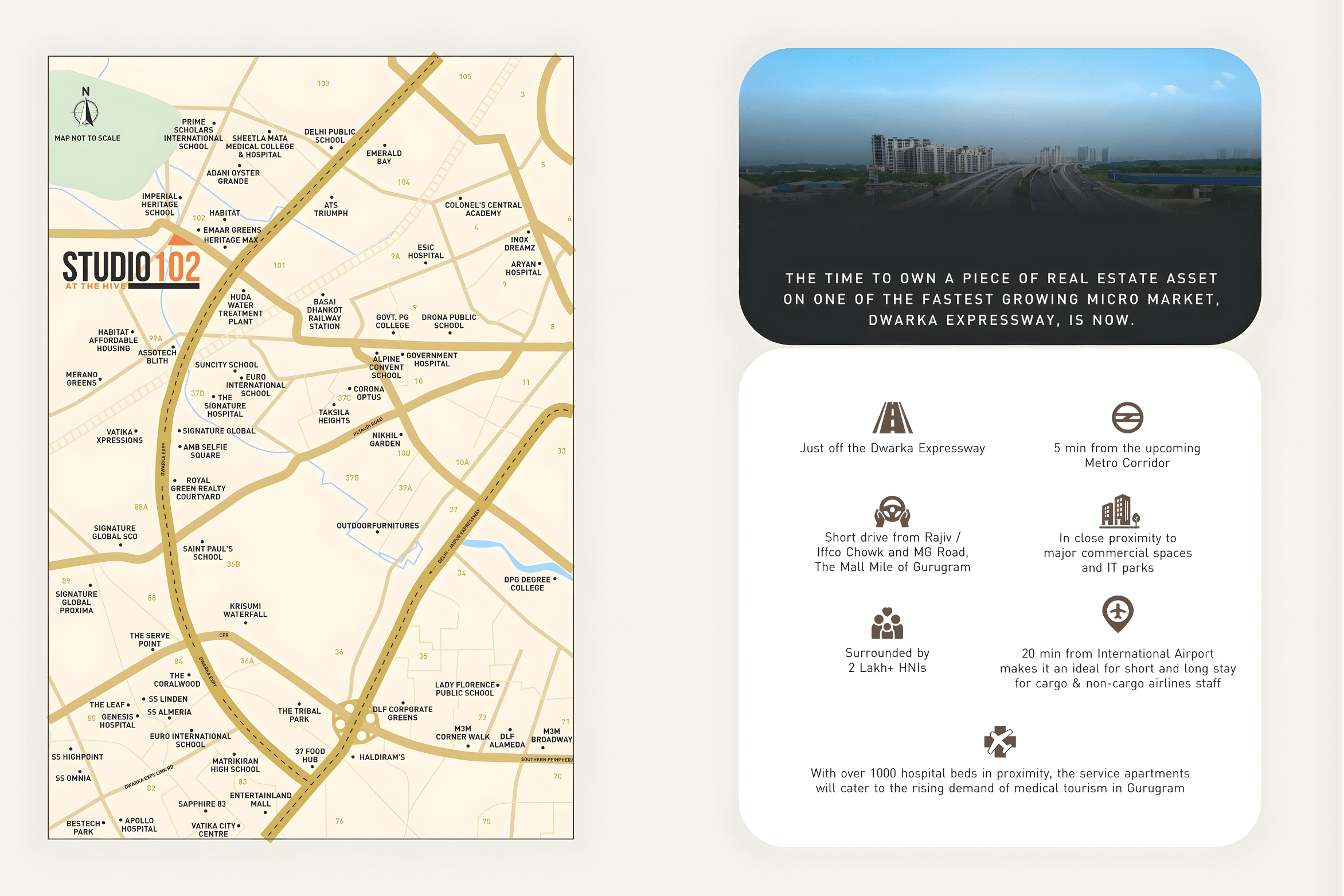- Located on the Dwarka Expressway, along a 75m wide road, it provides great access to IGI
