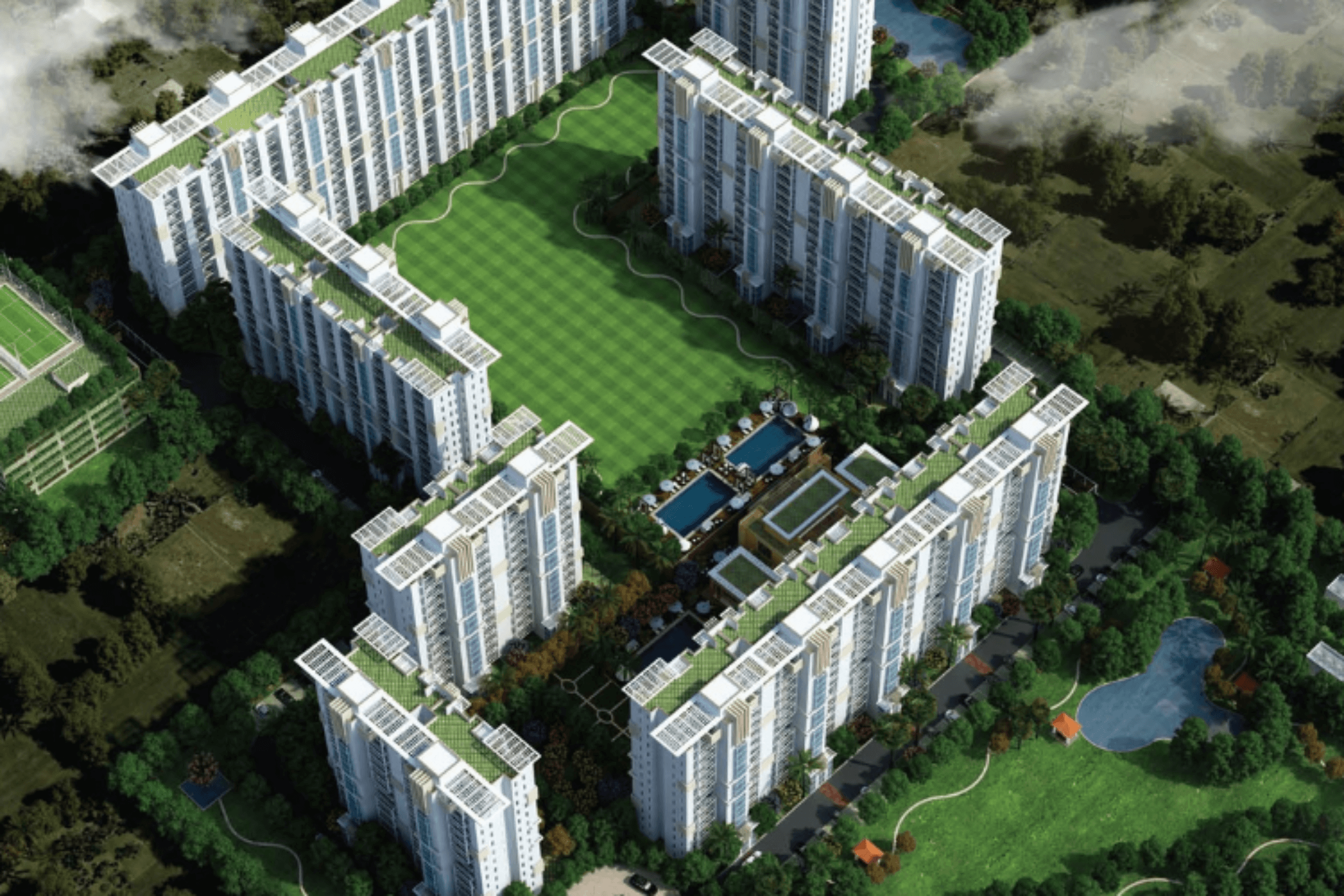 The apartments come with roomy balconies, modular kitchens, and premium fittings. They are